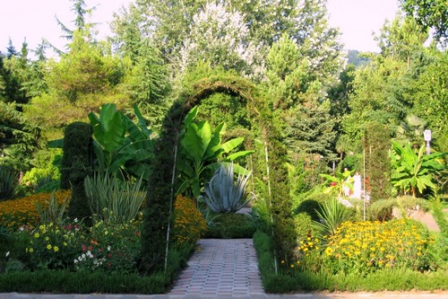 Тщательный подбор декоративных, плодовых деревьев и кустарников, многолетних и однолетних цветочных культур для горизонтального и вертикального озеленения.